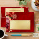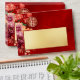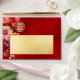This Chinese wedding envelope features colorful peony flowers and a gold double happiness symbol on a shimmering red background.