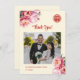 This Chinese wedding thank you card features a red double happiness symbol and watercolor peonies on a cream background. Matching wedding stationery available.