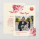 This Chinese wedding thank you card features a red double happiness symbol and watercolor peonies on a cream background. Matching wedding stationery available.