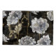 Pattern with peony bouquet with baroque gold swirls and leaves on black background with grunge structure-stucco.