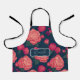 Great color and even though I ordered the kid size, it covers well enough to use during the holidays. I am not a big woman and prefer a shorter apron. I stand 5"6" and the length of the garment goes to mid-thigh. The tie straps fit well at my waist and even though there is no neck strap adjustment, the opening is plenty big enough. I am happy with the size and fit. I am sharing my apron with my 10 year old grandson, too! The color is vibrant and looks good, as shown on the website. The stitching looks strong and reinforced. Photographed is front side and back side of the apron, reinforced straps and coloring. My phone camera may not be the best at showing the details.