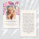 This memorial poem card can be given as a keepsake at a Celebration of Life or funeral service or sent as a special tribute to those who were unable to attend. This card can be personalized with a favorite photo and your choice of prayer or poem. The photograph is for illustrative purposes and can be changed to one of your own.