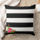 Beautiful peony flowers on black and white striped Throw Pillow. Flowers only on the front side. Great for most environments.