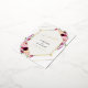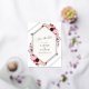 A modern romantic save the date featuring a gold geometric frame wrapped in lush watercolor florals in shades of blush, mauve, cream, and deep burgundy. Soft greenery and delicate blooms create an elegant arch around your details, giving the design a luxurious yet timeless feel.