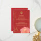 A classic Chinese wedding details invitation card featuring fancy gold and pink peony with a double xi character.