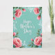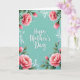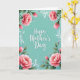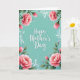 This greeting card features the words “Happy Mother’s Day” centered in white flowing lettering, standing out against a calm aquamarine background with a soft, lightly textured look. Around the edges, a lush floral frame wraps the message like a gentle embrace, suggesting closeness and care ❤️. Large pink peony-like blooms sit near the corners, with layered petals shifting from pale blush to deeper rose tones. Fine petal lines and shading give the flowers a tender, just-opened look, as if they’re leaning in toward the greeting. Deep green leaves and slender stems weave between the blossoms, adding contrast and a grounded, garden-fresh feel 🌼. Small white accent flowers and airy white ornamental curls fill the gaps, keeping the border detailed without crowding the center text. The aquamarine field remains open and uncluttered, while the pink flowers and green foliage form a soft, rounded frame around the white message.