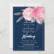 Peony pink silver glitter navy blue floral Wedding Invitation