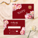 Watercolor peony flowers on a maroon red background. RSVP Chinese Wedding Card.