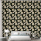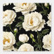 A beautiful seamless repeating pattern of wall to wall off-white peo peony flowers with mustard gold stamens in full bloom set against a black background that has small green leaves and peony buds around the blossom. This bold and elegant country meadow inspired design has a timeless and elegant summer / spring feel to it. Transform any room into a stately and majestic masterpiece with this design suited to any large space whether it be a living room; bathroom or bedroom. Ideal for country manors, English and French cottages, homes and business environments.