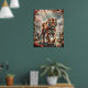 A majestic peony tiger strides through an imperial garden where strength meets floral luxury. Realistic tiger anatomy fuses with layered peony petals, elegant leaves, bold stripes, and rich botanical textures across its powerful body. Soft sunlight, drifting blossoms, stone pathways, and misty garden architecture create a cinematic upscale setting. This striking fantasy design adds drama, elegance, and confidence to modern interiors, offices, bedrooms, or statement gift collections. Perfect for tiger lovers, luxury decor fans, and floral wildlife art collectors.