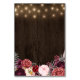 Peony Wood Wedding Reception + Accommodation Cards - features a rustic barn wood background with string lights. The bottom features various elegant watercolor peony flowers, roses and floral elements in shades of gray, pink, burgundy, wine and Marsala. Include these detail cards to inform your guests of your reception location, the reception timeline and hotel information to make planning easier.