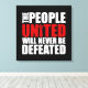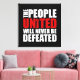 "PEOPLE UNITED WILL NEVER BE DEEATED" SIGN IN BLACK, WHITE AND RED