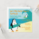 Surf and penguin theme birthday invitation with two surf penguins. One is riding the pipeline the other holding a surfboard. Perfect invitation for a surf theme birthday party for young kid! Customize with your own wording and fonts!
