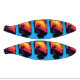 colorful crazed monster head that lives within the states of plastic in a sea of blue