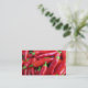 This business card advertises a hot and sweet pepper market which also offers salsa, relishes and pickles. The front features brilliant scarlet red hot chili peppers. The reverse side has more peppers and all the pertinent text which can be customized to suit your business.