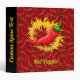Red chili pepper with circle of flame on seamless pattern. Custom front and spine text.