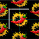 Red chili pepper with circle of flame. Custom background color. Seamless pattern.