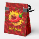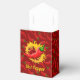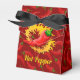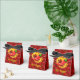 Red chili pepper with circle of flame on removable seamless pattern background. Custom text on sides.