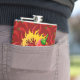 Well made flask, a little better than I had expected. Flask came in clear plastic box which gave it a nice presentation when I took it out of the zazzle packaging. Image is not printed on flask but on sticker. Don't know how this will hold up I haven't used it yet. This would make a Great gift! I plan to purchase more for friends! Cheers. I thought a little brighter than computer. Very crisp, writing wasn't