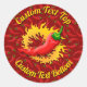Red chili pepper with circle of flame on seamless pattern. Custom text.