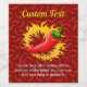 Red chili pepper with circle of flame on removable seamless pattern background. Custom text.