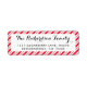 Send jolly holiday wishes to family and friends with this festive red and white peppermint candy cane stripes return address label. Add a touch of Christmas cheer to outgoing mail, and enjoy sending out all those Christmas cards. Perfect for holiday event invitations as well!