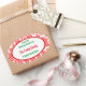 An oval, custom baking, cookie or recipe stickers with red and green blackletter on a red and white holiday pattern of peppermint candies.