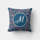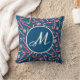 Peppermint Christmas Candy Cane Blue Monogram Throw Pillow