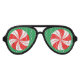 This novelty Christmas sunglasses have large red peppermint candy against a green backdrop. This would be a fun addition to a Christmas holiday party, and a great ugly sweater accessory.