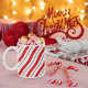 Classic white 11 oz. mug with an image of red and white peppermint stripes. See matching candy jar, paper plate, shot glass, square ceramic tile and coasters. See the entire Christmas Mug collection under the HOME category in the HOLIDAYS section.