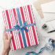 Peppermint stripes decorate this festive holiday wrapping paper. The design is from original art.
