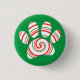 Custom buttons with peppermint swirl inspired shapes in red, green and white.