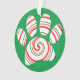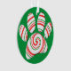 Custom decorative ornaments with peppermint swirl inspired shapes in red, green and white.