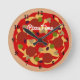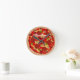 Pepperoni pizza novelty design custom wall clock. Fun decoration for kitchen, office, italian restaurant, pizzeria, dorm room, man cave, student housing, hall, diner, cafe, pub, bar, delivery service, kids bedroom etc. Fast food image with stylish script typography. Round or square shape. Medium and big size. Add your own family name, company name, business slogan or funny quote optionally. Cute gift idea for chef cook, friends, family etc.