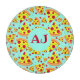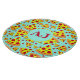 Red and yellow pepperoni pizza slices patterned cutting board with a monogram circle in the middle to add your own initials