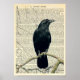 Perched Raven, Crow, Edgar Allan Poe, Gothic, Nature, Gifts for Goths, Dictionary Print, Book Page Art Poster