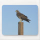 A Swainson's Hawk perched on a telephone company underground cable marker post. Location is State Highway 562, Union County, New Mexico USA