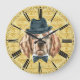 Percival is a Labrador Retriever that begs to be taken seriously...hence the fancy hat and bow tie. Digital watercolor dog portrait on gold patterned background