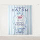 Choose this unique hand-drawn She's the Perfect Catch Beach Preppy Fishing Bachelorette Backdrop template to celebrate your Bach party with your girls' squad. On the reverse, you can add a photo if you like. Personalize the design with your details, and order your custom bachelorette invitations and party supplies.