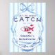 Choose this unique hand-drawn She's the Perfect Catch Beach Preppy Fishing Bachelorette Welcome or decorative sign template to celebrate your Bach party with your girls' squad. On the reverse, you can add a photo if you like. Personalize the design with your details, and order your custom bachelorette invitations and party supplies.