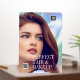 PERFECT HAIR & MAKEUP in white letters on beautiful young woman with long brown hair. Great signage for hair and makeup salon with logo and