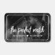 “The Perfect Match” appears centered near the bottom of the photo in a playful handwritten font, paired with small heart accents for a sweet, romantic detail. Just below, your names and wedding date are displayed in crisp, easy-to-read lettering, creating a balanced and refined layout.