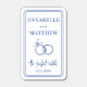 Personalized Minimalist The Perfect Match Wedding Matchbox Favors. These matchboxes feature a crisp white background with soft blue fonts and hand-drawn artwork inspired by simple French elegance. At the top, a delicate sketch of intertwined rings sits beside the couple’s names in a mix of classic serif and relaxed handwritten script, giving the layout a light, effortless charm.
