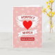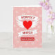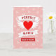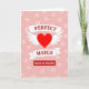 Designed with a big red heart in the center, this card puts romance front and center ❤️. The heart has white wings on both sides, and it sits on a soft pink background. Behind it, there are many faint heart outlines, and quite a few look cracked or broken, which adds a bittersweet touch. Across the heart are two white ribbon banners: the top one says “PERFECT” and the bottom one says “MATCH.” The words are in white serif letters and sit neatly in the middle of each ribbon. Under the heart, a red rectangle reads “MADE IN HEAVEN” in white sans-serif letters, giving the message a strong finish