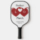 Monogram pickleball paddle with a nice wedding theme. A fun way to celebrate your wedding day. Customize the text on the paddle. You can add your desired name, monogram, initials, phrase, and date. Black and white colors with red hearts. Use the template to create your own monogram pickleball paddle.
