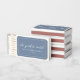 These sophisticated matchboxes feature a soft dusty blue or periwinkle background with crisp white fonts, perfect for weddings, engagement parties, or bridal showers.
