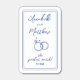 Personalized Simple The Perfect Match Wedding Matchbox Favors – Blue Edition. These charming matchboxes feature a clean and simple design with blue fonts and hand-drawn sketches, perfect for a variety of celebrations. At the top, the bride and groom's names are displayed alongside a subtle, blue sketch of intertwined rings. A classic double-line border in blue frames the matchbox, adding a soft, refined touch.