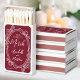 Vintage-Inspired “The Perfect Match” Wedding Favor Matchboxes – These elegant and charming matchboxes feature a burgundy red background on a black matchbox, giving them a classic vintage feel. "The Perfect Match" is printed at the top in a mix of graceful handwritten script and traditional serif fonts, all in crisp white for a simple yet refined look.