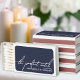 These charming matchboxes feature a deep navy blue background with crisp white fonts, creating a modern and timeless look that works for any wedding style.