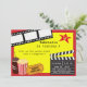 Start your celebration off with this adorable movie night invitation. It has all the elements of a great movie night. On the bottom there's a drink, popcorn, and a ticket. There's a black and white movie cue card where you fill in party info. There's a black and white film strip along the top. The background is yellow with a red border. Check out our many other designs and products in this line. © babystar